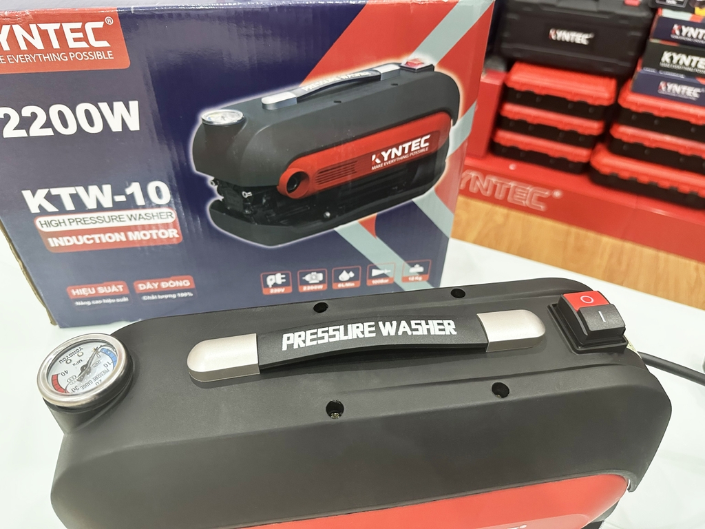 Với công suất 2200W, Kyntec KTW-10 tạo lực đủ mạnh để xử lý những vết bẩn phổ biến trên xe và nền sân: bùn đất đóng mảng, bụi đường bám lâu, vết bẩn ở lốp – mâm… Công suất này giúp bạn giảm đáng kể công chà tay, tiết kiệm thời gian rửa xe mỗi lần sử dụng. Với người dùng cần máy rửa xe cho tần suất cao, đây là điểm đáng giá vì máy “đủ lực” để làm nhanh mà không phải cố quá nhiều.