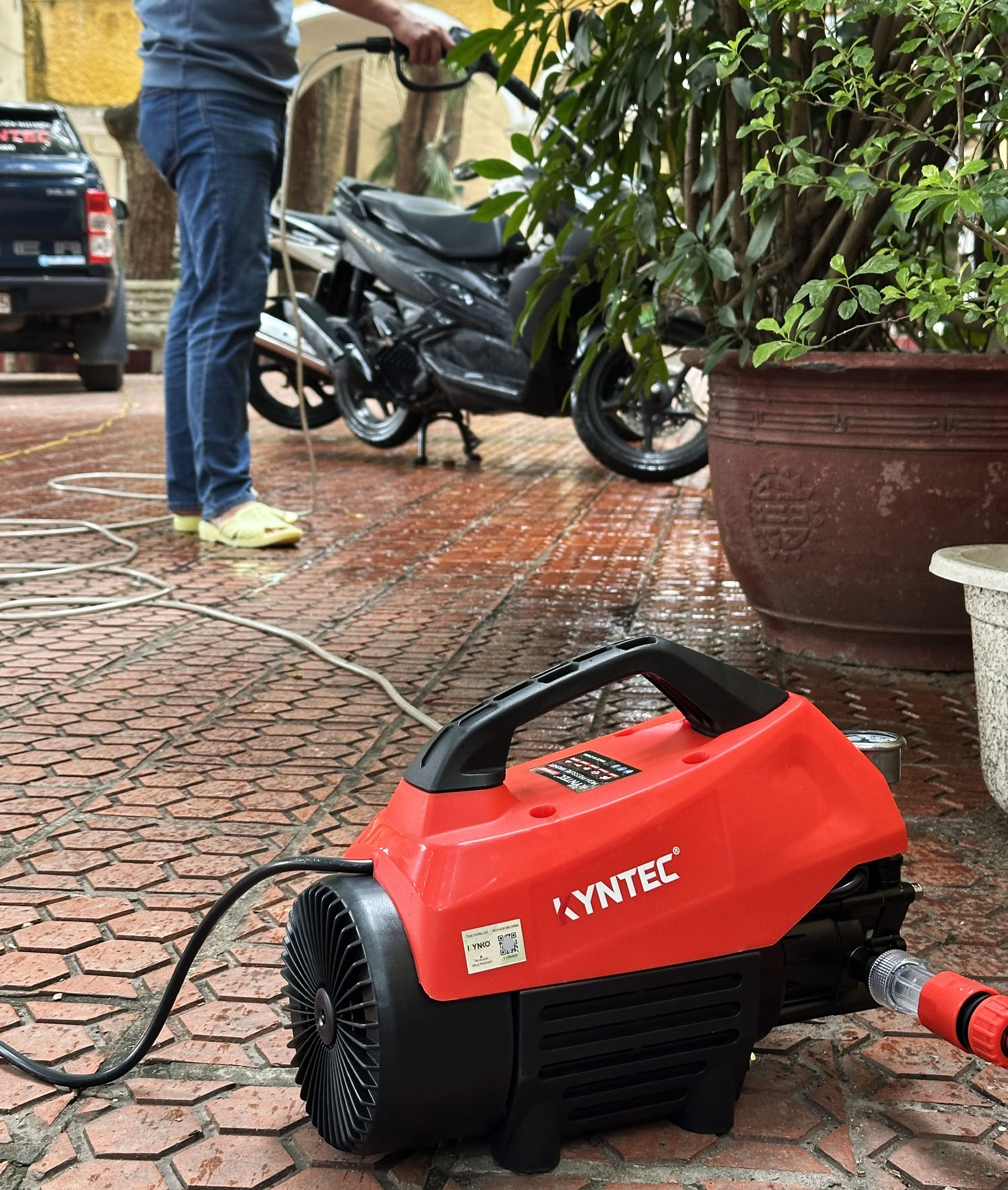 Máy rửa xe Kyntec KTW-05 – Lực phun khỏe, vận hành ổn định, tối ưu chi phí cho gia đình. Trong nhóm máy rửa xe dành cho gia đình và nhu cầu vệ sinh dân dụng, nhiều người thường muốn một mẫu máy phun khỏe, dễ dùng và chi phí hợp lý. Kyntec KTW-05 là lựa chọn nổi bật khi đáp ứng đúng những tiêu chí đó: công suất 2100W, áp lực phun 100 bar, dây cao áp 10m, phù hợp cho nhiều công việc làm sạch hằng ngày. Đây là dòng máy hướng đến người dùng cần hiệu quả thực tế: rửa xe máy, ô tô gia đình, vệ sinh sân gạch, tường ngoài trời, cửa cuốn, khu vực gara hoặc các vị trí bám bẩn lâu ngày. Thiết kế gọn, thao tác đơn giản, hiệu năng đủ mạnh để giúp bạn tiết kiệm thời gian vệ sinh mà vẫn kiểm soát tốt chi phí đầu tư ban đầu.